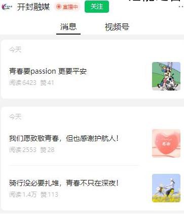 11月9日凌晨,河南开封官号连推多条言论,倡议大学生不要扎堆骑行,对社会要有责任心,要激情更要安全,并珍惜此次全社会的保驾护航。
