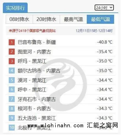 前一日,据中央气象台最低气温实况排行显示,12月11日15时至12日14时,巴音布鲁克最低气温达-40.8℃,成为这一时间段全国最低气温排行榜榜首,比位列第二的内蒙古图里河低了5.4℃,也成为入冬后我国首个跌破-40℃的国家气象站。