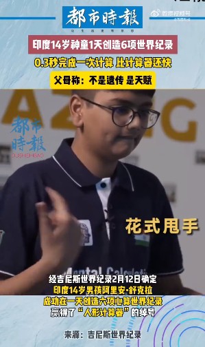 印度14岁神童一天创6项世界纪录