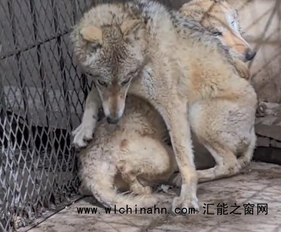 近日,河南濮阳,东北虎饲养员给狼送鸡吃,两只狼被吓得瑟瑟发抖。当事人:我真没打它俩,可能身上沾了东北虎的气味。