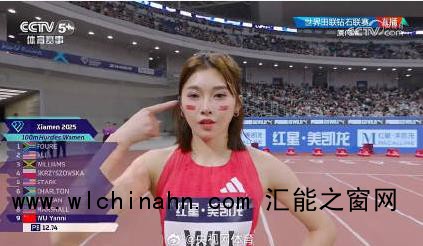 钻石联赛厦门站女子100米栏决赛,吴艳妮以13秒00刷新个人赛季最佳成绩,获得第七名。牙买加选手威廉姆斯12秒53获得冠军。