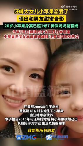 【#汪峰大女儿小苹果晒男友甜蜜合影#】11月25日,汪峰大女儿小苹果恋爱了,晒出和男友甜蜜合影。#20岁小苹果身高已超1米7#,神似妈妈葛荟婕。今年7月汪峰携四子女同游日本回国,小苹果与同父异母妹妹醒醒、汪景怡同框引热议。 #汪峰大女儿疑似恋爱#