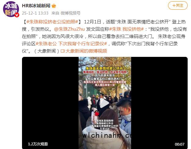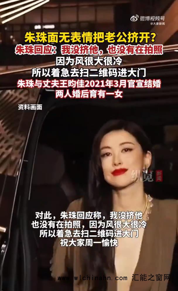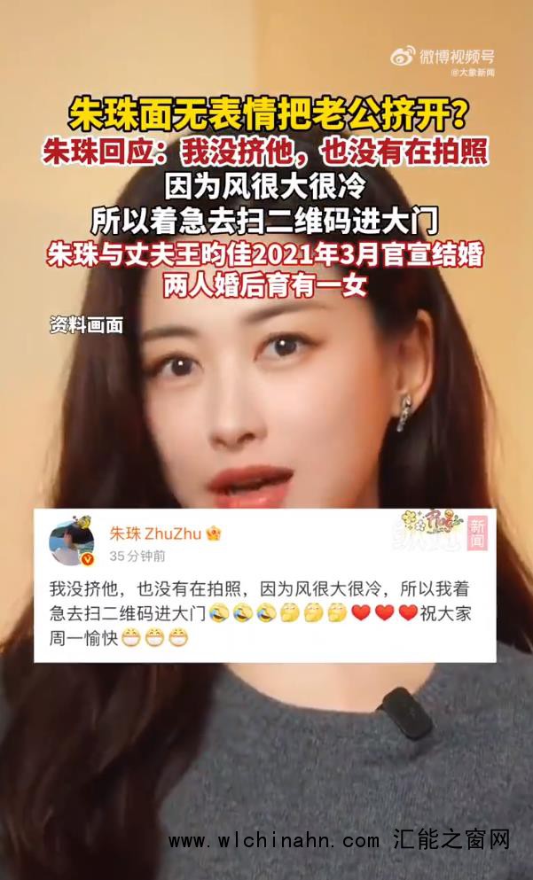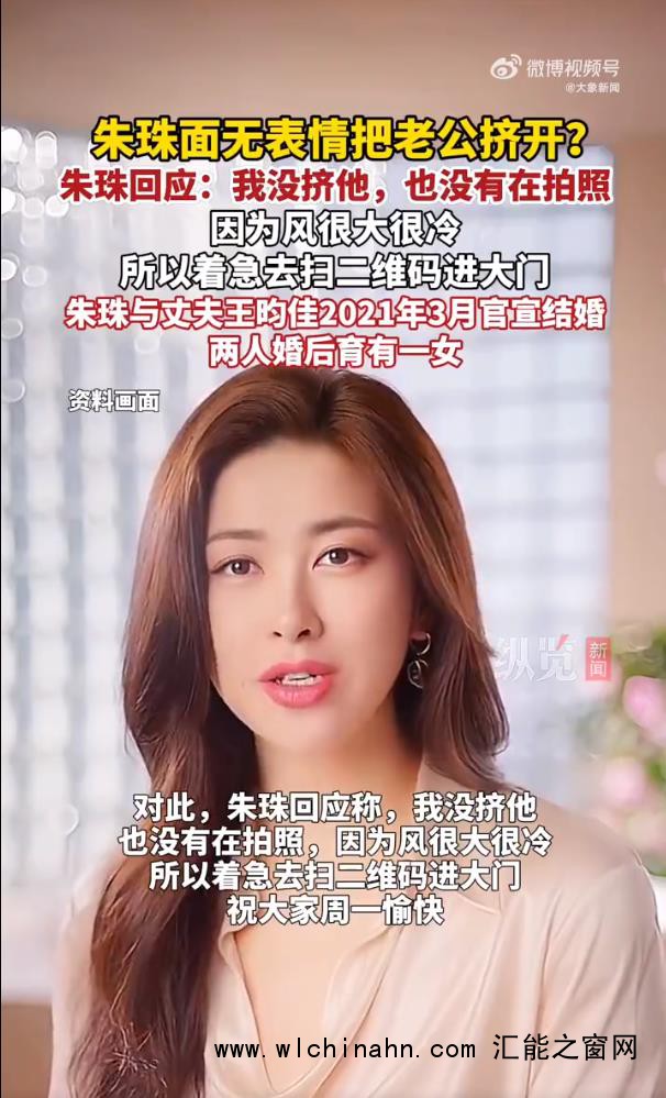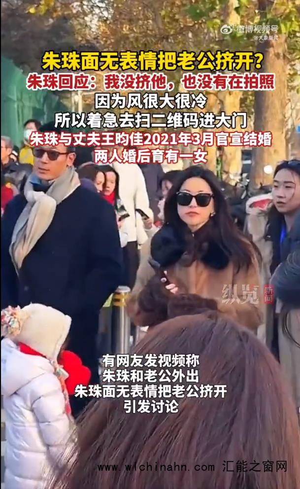 【#朱珠称没挤老公没拍照#】 12月1日,话题“朱珠 面无表情把老公挤开” 登上热搜,引发热议。@朱珠ZhuZhu 发文回应称#朱珠 我没挤他#:“我没挤他,也没有在拍照”,她说因为风很大很冷,所以自己着急去扫二维码进大门。 朱珠老公现身评论区#朱珠老公 下次我背个行车记录仪#,调侃称“下次出门我背个行车记录仪”。(大象新闻)来源:大象新闻的微博视频