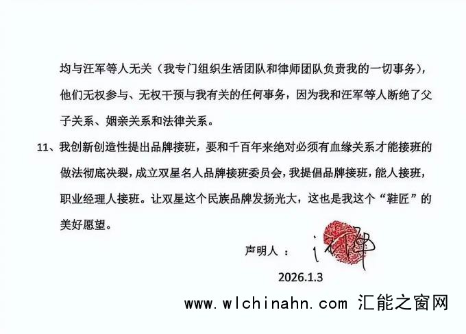 面对亲情崩塌,汪海在声明最后祭出“杀手锏”:彻底打破“血缘接班”的传统。他宣布将成立“双星名人品牌接班委员会”,主张“能人接班”和“职业经理人接班”。
