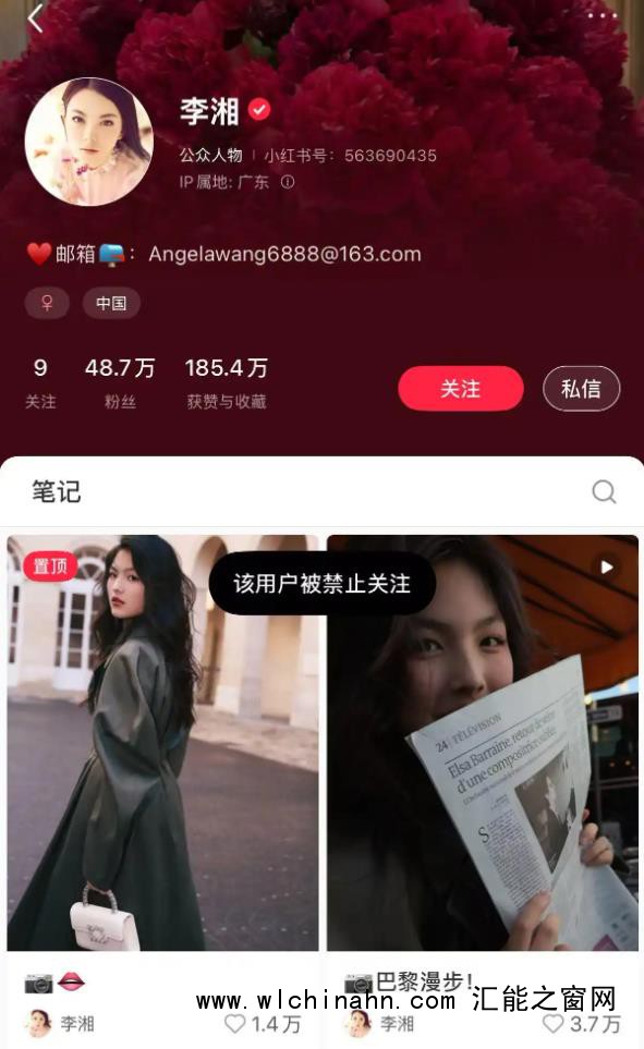 1月16日,极目新闻记者注意到,前湖南卫视主持人李湘的抖音、小红书和微博的账号被禁止关注。