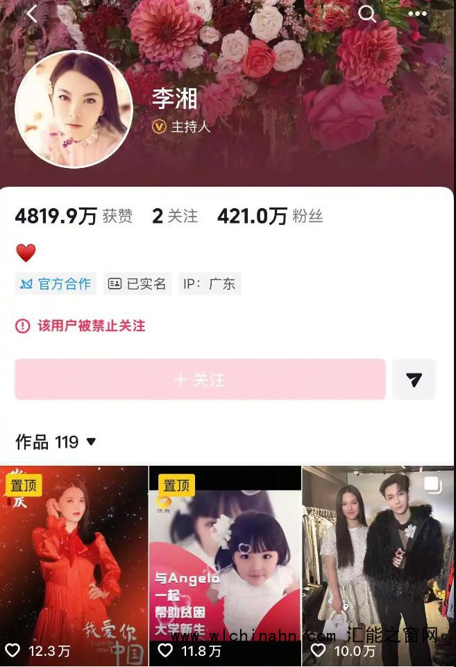 李湘多平台账号被禁止关注 究竟发生了什么?