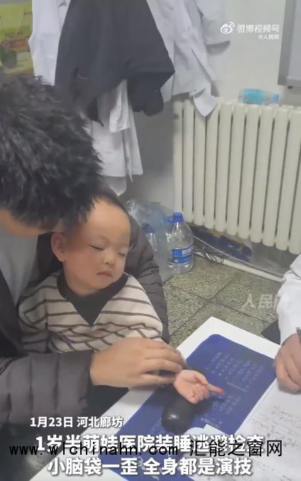 近日,河北廊坊某医院诊室内上演了一出令人忍俊不禁的“童趣大戏”。一名年仅1岁半的萌娃面对医生检查时,突然小脑袋一歪、双眼紧闭,竟用全身演技表演起“装睡大法”,试图以此逃避检查。