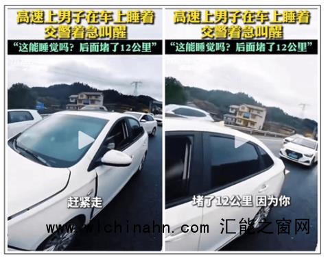 2月25日,春节假期刚结束,返程的车子特别多。高速路上,一个男子竟然在驾驶座上睡熟了,他的车停在车道上,成了挡路的“路障”。后面的车子不知道情况,都慢慢减速避让,拥堵的车队越拉越长,等交警赶紧赶到时,拥堵已经有12公里长了。交警大声叫醒他:“这地方能睡觉吗?赶紧开走”!
