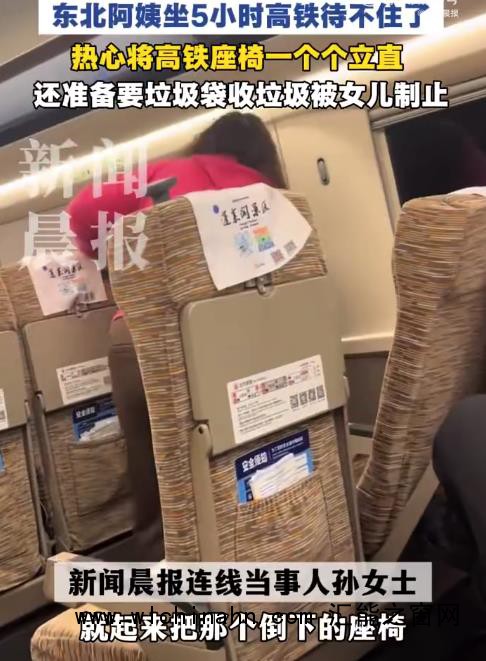 最近啊,网上一段视频可火了,说的是一位东北阿姨坐了5小时高铁后干的事儿。视频里,阿姨在高铁旅程快结束时,看到车厢里乘客少了,好多座椅靠背都放倒了,她二话不说,主动把周围那些空着的座椅靠背都给调直了。不仅如此,她还打算找乘务员要个垃圾袋来清理车厢,不过被她女儿给劝住了。