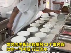 馄饨店老板10秒摆放33个馄饨碗 究竟发生了什么?
